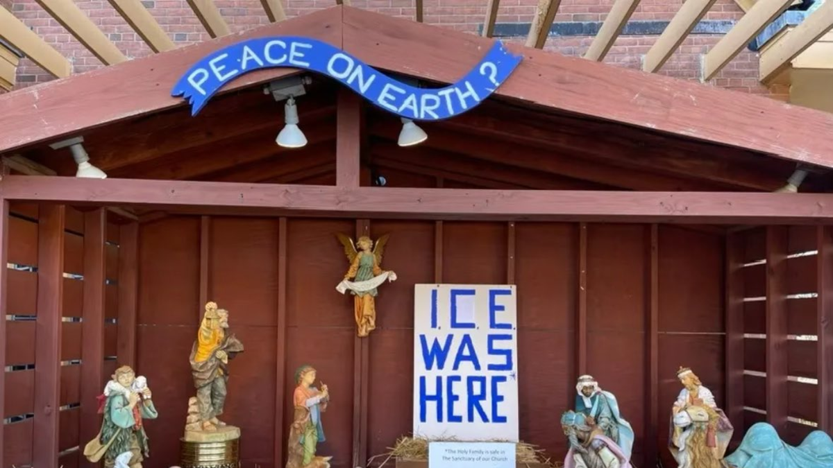 Una iglesia católica en Dedham, Massachusetts, causó gran polémica tras instalar un belén sin la Sagrada Familia y acompañado de un cartel que decÃa “ICE estuvo aquÔ.