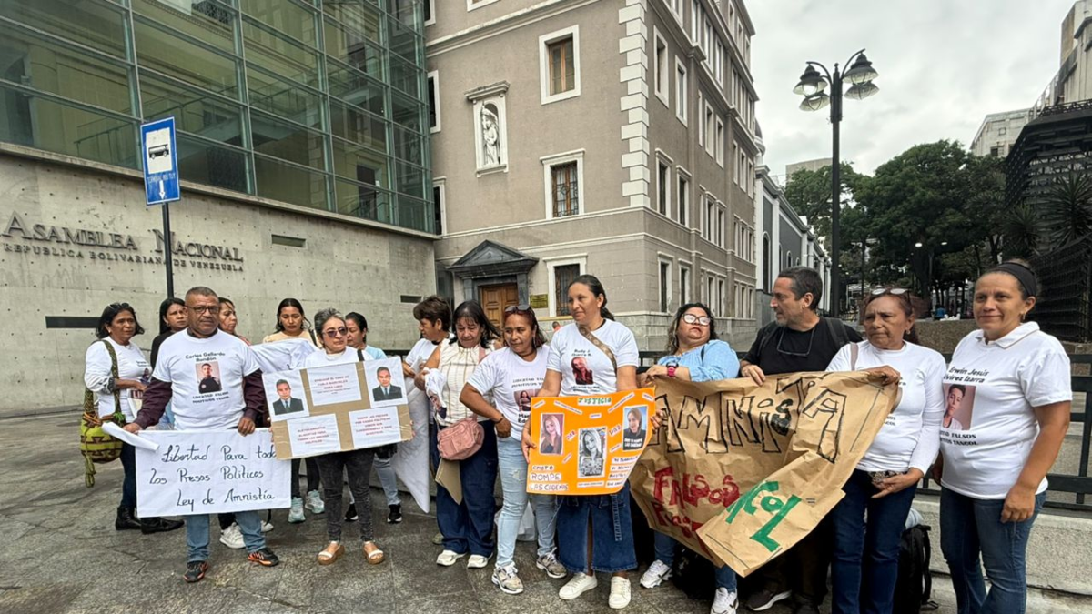 Junto a otros familiares de presos y activistas de la organización no gubernamental Surgentes, María exigió este martes a la Asamblea Nacional una respuesta al pedido que hicieron hace dos semanas para incluir en la amnistía a los encarcelados por sus presuntos vínculos con grupos terroristas colombianos.