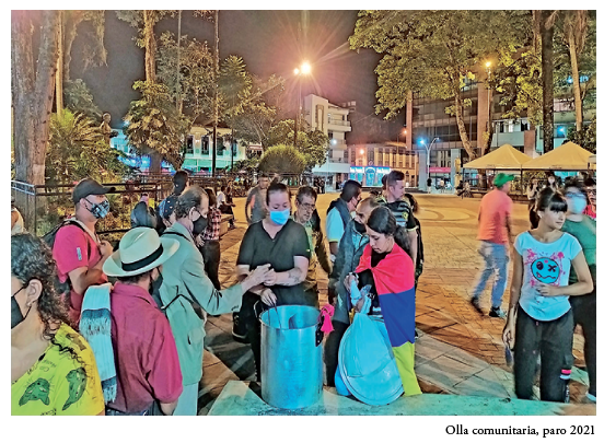 La “lucha de semillas” germinó al calor del Paro Nacional de noviembre de 2019. Durante 35 días habitamos las calles, parques y espacios públicos de Calarcá, Quindío. Fueron días de ollas sociales, cacerolazos, marchas, conciertos al aire libre, vigilias y películas en el parque, todo como parte de nuestro grito colectivo de resistencia nacional.