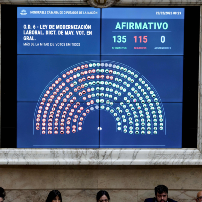 La Cámara de Diputados de Argentina aprobó pasada la medianoche del jueves al viernes la reforma laboral impulsada por el gobierno de Javier Milei, en