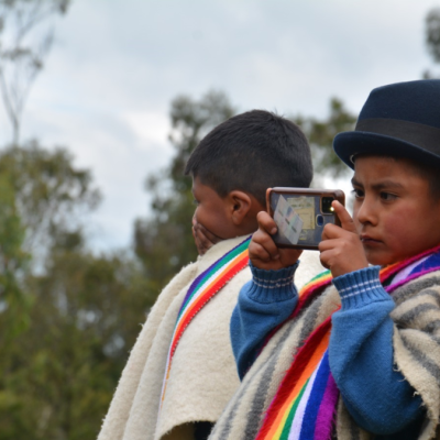 El pequeño Samuel muestra su sombrero, su inseparable ruana y los siete colores del arcoíris en su sombrero Wifalaemblema de los pueblos indígenas de los