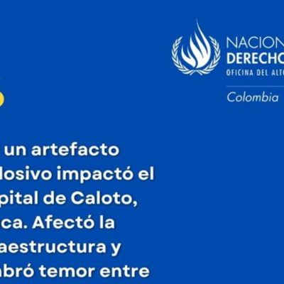 “La madrugada de hoy un artefacto explosivo impactó en el Hospital Niña María de Caloto, Cauca. “Esto ha impactado la infraestructura y sembrado el pánico