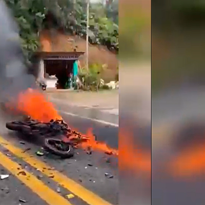Espectacular choque de dos motos de gran cilindrada en Antioquia, como resultado del cual murieron dos personas y una de las motos quedó completamente calcinada – Ciudad al día