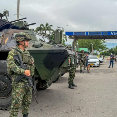 Desde primeras horas de la mañana, el Puente Internacional Simón Bolívar se encuentra resguardado por tres tanques del Ejército Nacional, varias patrullas policiales y funcionarios